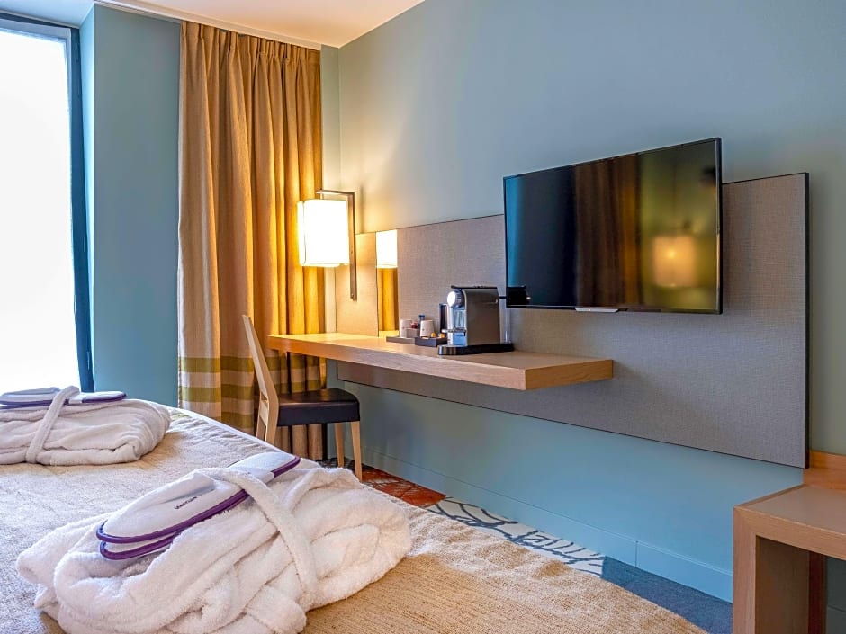 This superior room of 25m2 minimum, with queen size bed, overlooking the city or the garden, is equiped with mini-bar including free soft, Nespresso machine, bathrobes, slippers and welcome amenities. Bathroom with shower or bath. Sofa bed on request.